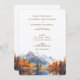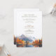 Invite a sus invitados a un boda con una vista que les permita respirar con nuestra invitación a la boda. Esta atractiva invitación presenta vistas a las majestuosas montañas y a un tranquilo lago, rodeado de un bosque en llamas con colores otoñales. La paleta es una armoniosa mezcla de naranjas y rojos feroces, blues tranquilos y evereneses ricos, que resume la esencia de una temporada de otoño en las tierras altas. La elegante y moderna tipografía en gris pizarra complementa los tonos cálidos y fríos, proporcionando una invitación perfecta para su rústico boda montañés. La serena reflexión sobre el agua añade una calidad de sueño a la vista previa de tu día especial."