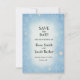 Anuncie su día especial con estilo de temporada con esta tarjeta de reserva de invierno. Con un mágico borde de copos de nieve y un congelador fondo azul, marca la pauta para tu próxima boda de invierno. El elegante diseño es a la vez romántico y festivo, perfecto para capturar el encanto acogedor de una celebración nevada. Personalice sus nombres, fechas y lugares para que los huéspedes puedan vislumbrar la celebración que viene.