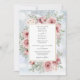 Una invitación de boda de invierno moderna y elegante que presenta hermosas flores de rosa y tipografía elegante con un fondo de rosa polvoriento en el reverso. Diseñado por Thisisnotme©