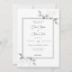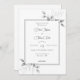 Eucalipto y hojas de mirto, dibujadas a mano con lápiz de grafito clásico y recubiertas de oro blanco (digitalmente), crean una plantilla moderna, sofisticada, elegante y de moda para la invitación a la boda de invierno, que es una moderna versión de un marco tradicional de boda floral. La textura del lápiz negro se muestra en el papel blanco, dándole una sensación de elegancia sin esfuerzo. El marco es también una versión actualizada de un clásico, que da una estructura de diseño pero que mantiene un sentido de frescura moderna. Presenta un guión moderno de caligrafía para los nombres de la novia y el novio.