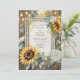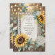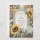 Hermosos girasoles rústicos, margaritas, invitación a bodas con jarros de albañil.