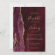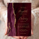 Esta elegante y moderna invitación a la boda incluye un diseño de batidos de color burdeos adornados con un falso purpurina de oro. El texto del personalizable combina la escritura a mano de color dorado, la copperplate y las letras cursivas. El reverso presenta un diseño coordinado de agate de color burdeos y dorado.
