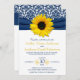 Flor de girasol amarillo y damasco azul marino con invitación a la boda floral y a la boda con flores de cinta. Perfecto para un boda en verano, otoño/otoño o primavera. Ideal para un boda de temática azul marino y amarilla o un boda de girasol emparejado con azul marino. Puede personalizar todo el texto. Para cambiar el texto, utilice las opciones de personalización. O para cambiar el tipo de letra, el tamaño del tipo de letra, el color del tipo de letra o la posición del texto, elija personalizar. NOTA: Se trata de un diseño plano, impreso sin ningún tipo de embellecimiento en 3D o en relieve.