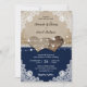 Estas románticas invitaciones de boda rústicas inspiradas en los corazones de burlap y en el fondo de un encaje son perfectas para invitar a sus invitados a su rústico campo/patio trasero/fiesta de bodas de granero azul marino.