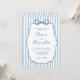 Esta invitación de boda caprichosa azul y blanca con estilo costero presenta un marco festoneado dibujado a mano con un lazo sobre un fondo de franjas de acuarela y letra manuscrita.