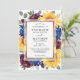 Estas invitaciones nupciales cuentan con un borde floral acuático de girasoles, rosas de Borgoña y flores navales con follaje. El texto está bordeado por un falso borde de oro. Personalízalos con tu propio texto. También hay una suite boda coincidente.