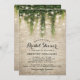 Mágicas invitaciones a la ducha de novias de cuento de hadas con fondo rústico de pared de ladrillo, viña verde de hiedra con brillantes luces de trinquete y una plantilla de invitación a la novia.