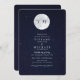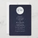 Se cree que el universo mismo tiene algo en común con el amor y el matrimonio: a pesar de la inmensidad del espacio y el tiempo, tú y tu pareja lograron encontrarse. Celebra tu unión con estas invitaciones de boda celestes en un diseño de luna de acuarela azul. Esta invitación está impresa en una mezcla de fuentes de bloque y escritura en tinta azul marino. La invitación se revierte a un diseño de cielo estrellado azul marino.