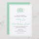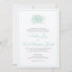 Invitación nupcial clásica con un dibujo inspirado en la mansión Smithville. El texto de la invitación está escrito en un estilo clásico de color verde menta.