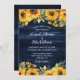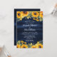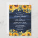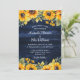 Invitación nupcial de girasol rústico azul marino ideal para una boda rústica de campo azul marino inspirada en las flores de girasol.