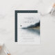 Comience a planificar su día especial con estas elegantes invitaciones. Este diseño presenta una pintura acuarela de un lago y un paisaje de pinos con tipografía de escritura clásica. Las tarjetas se revertirán a un patrón geométrico falso de oro contra un fondo azul marino.