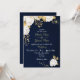 flores elegantes de lujo blancas y doradas con algunas hojas de oro invitación a la boda azul marino Los detalles del purpurina se simulan