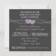 Plantilla de invitación a la boda rústica en blanco y negro de pizarra. Estas invitaciones a bodas con tiza tienen dos corazones morados entrelazados y "creemos en el tipo de amor que dura toda una vida", así como en la tradicional "Matrimonio Sagrado". Esta sencilla y tradicional invitación a la boda en pizarra le da un toque de anticualidad.