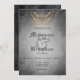 Acepte el misterioso encanto de su día especial con este diseño oscuro y mínimo. Este sencillo y oscuro diseño de la invitación a la boda presenta el fondo de un misterioso lavabo acuático negro, con una polilla de color en la parte superior, que representa el misterio de la noche y la transformación. El texto aparece sobre una suave cubierta ovalada borrosa blanca, dándole a la invitación un aspecto misterioso y hermoso. La parte posterior se transforma en el sencillo fondo de un lavado de color negro. Es parte de la suite Boda Dark Gothic Black Watercolor Brown Moth de tarjetas creadas por Simply Farmhouse Press.