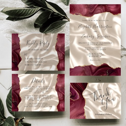 Burgundy Gold Agate Ivory Silk Wedding SuiteDiseñado por Akhates Designs