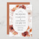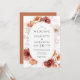 Invitación de bodas de marco floral inspirada en el cálido y rústico óxido de tierra y en los tonos de terracota de la naturaleza, para un estilo boho con tipografía en un marco floral.