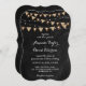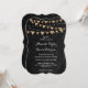 Esta invitación a una boda en pizarra negra inspirada en el bunting burlap sobre un fondo negro de pizarra decorado con luces de cuerda es perfecta para invitar a sus invitados a su rústico campo, exterior, patio trasero o fiesta de bodas de granero.