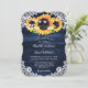Invitaciones rusticas a bodas de azul marino y girasol, ideales para una fiesta de boda rústica de color azul marino inspirada en flores de girasol. Elementos coincidentes disponibles.
