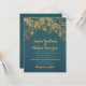 Elegante invitación a la boda con hermosas luces de cuerda de oro purpurinoso y un bokeh brillante en un atrevido fondo verde azulado.