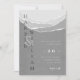 Invitación moderna de boda gris minimalista con una imagen de montañas de papel roto. Guión vertical moderno con el nombre de novia y novio.