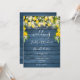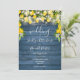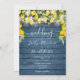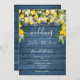 Con luces de cuerdas de bonito, limones, flores y vegetación sobre un fondo azul rústico de madera, esta elegante invitación a la boda puede ser personalizada con su información especial del evento. Diseñado por Thisisnotme©
