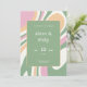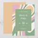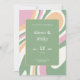 ¡Viva tu celebración boda con nuestras únicas invitaciones abstractas de estilo! Trae encanto y elegancia a tu evento con un vibrante fondo abstracto rosa, verde y crema con líneas onduladas.