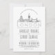 Una invitación nupcial única para un matrimonio que tiene lugar en la hermosa ciudad de Londres. Esta invitación presenta un ilustracion estilizado del paisaje único de la ciudad con su nombre debajo. A esto le sigue la información del día de la boda en un estilo de línea abierta que coincide. En el reverso de la invitación, un color gris profundo complementa el aspecto y la sensación. Todos los elementos individuales de la tarjeta de invitación están desbloqueados, por lo que puede cambiar o agregar cualquier detalle necesario mediante la función de personalización. Puede agregar una foto al reverso y agregarle un filtro en blanco y negro. Se encuentran disponibles tarjetas RSVP, bandas del vientre, bolsas de tote y más. ¡Diviértete siendo creativo y hazlo tuyo! Esta invitación incluye el icónico edificio Gherkin.