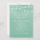 Invitaciones de boda verde azuladas/neo-mint de moda con luces de cuerdas blancas y un elegante tipo de letra de guión a lo largo de toda la invitación.