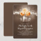 La invitación a la boda vintage incluye luces de cuerdas colgando de la rama del árbol y pequeñas jarras de albañil lindas con rosas naranjas y flores de aliento para el bebé. El tarro de albañil pintado a mano en el centro tiene un lindo corazón de amor y las iniciales de la novia y el novio. Otras jarras de albañil sólo contienen respiraciones de bebés blancos. Invitación perfecta para una boda rústica en el granero. Invitación a un boda al aire libre con luces de manga, luciérnagas y jarras de albañil florales.