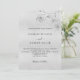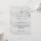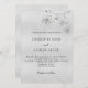 Una invitación a la boda moderna, elegante y minimalista. Fondo de aspecto metálico falso plateado decorado con flores plateadas. Personalice y agregue sus nombres y detalles del boda. Letras de color negro.