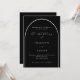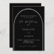Una elegante invitación a la boda. Un fondo negro con un arco en la parte delantera.