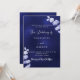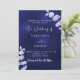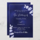 Fondo azul marino, decorado con tallos de eucalipto, brotes. El color azul es desigual. Personalice y agregue sus nombres y los detalles. Fondo azul marino. El color azul es desigual.