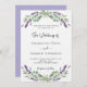 Un fondo blanco decorado con flores de lavanda y vegetación eucaliptica. Personalice y sus nombres y detalles. Volviendo: lavanda, fondo de color violeta.