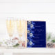Un fondo azul marino, decorado con flores de color azul y plateado. Personalice y agregue sus nombres y detalles. Fondo azul marino.