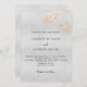 Una invitación a la boda moderna, elegante y minimalista. Fondo de aspecto metálico falso plateado decorado con flores de oro falsas. Personalice y agregue sus nombres y detalles del boda. Letras de color negro.