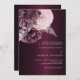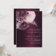 Un fondo burdeos y profundo, decorado con flores borgoñas y rosas, flores y follaje falso de plata. Personalice y agregue sus nombres y detalles del boda.
