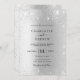 Una invitación de boda moderna, minimalista y formal. Un fondo falso plateado decorado con un falso purpurina. Personalice y agregue sus nombres y detalles. Letras de color negro.