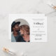 Invitación a una boda fotográfica Al frente: Añade tu propia foto vertical. Fondo blanco de moda, texto negro. Personalice y agregue sus nombres y detalles. Atrás: puede agregar más texto si lo desea. Vaya a la herramienta de diseño y agregue la capa posterior.