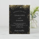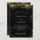 Una invitación de boda moderna y elegante. Fondo negro decorado con finos destellos de purpurina dorado. Personalice y agregue sus nombres y detalles del boda. Letras de color blanco.