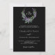 Fondo negro. Una corona floral de flores de lavanda y de eucalipto acuático. Personalice y agregue sus iniciales, nombres y detalles del monograma. Texto blanco. Atrás: agregue la URL de su sitio web boda al código QR para obtener más detalles y/o RSVP.