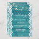 Invitación Boda de Madera Azul, Encaje y Luces de Cuerda