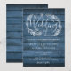 Invitación Boda de madera rústica azul con guión floral campe