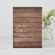 Invitación de boda rústica simple con los nombres de la feliz pareja en una elegante letra cursiva sobre los detalles especiales de la boda en un fondo de madera rústica. El reverso presenta un fondo de madera rústica coincidente. Diseñado por Thisisnotme