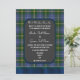 Patrón de revisión de mantas escocesas a rayas azules, verdes y amarillas, invitación formal tradicional a las bodas, personaliza fácilmente los nombres de novias y novios a las plantillas de texto para crear una invitación personalizado única para tus celebraciones y ocasiones especiales especiales especiales y elegantes de estilo escocés o masculino, perfecta para cualquiera con ascendencia escocesa.