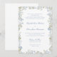 Presentamos nuestra elegante invitación a la boda, adornada con un impresionante marco floral azul suave y caligrafía clásica. Si buscas una invitación nupcial que exude sofisticación, lujo y estilo, esta es la invitación perfecta para ti. La invitación presenta un diseño botánico inextricable, suave, azul, blanco y verde con rosas blancas, hortensias azules y delicado delfino azul y vegetación que es a la vez intemporal y única, haciendo que tu invitación destaque del resto. La elegante caligrafía aporta un toque personal a la invitación, romántica y encantadora.