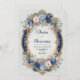 Invitación Boda de marco floral azul y dorado victoriano