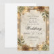 Un diseño de inspiración vintage con un fondo sepia texturizado, acentuado por ricos elementos florales y luces cálidas y brillantes. Evoca un ambiente de elegancia rústica y romanticismo intemporal para una ocasión especial.