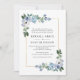 Un diseño de temática boda azul con una espalda azul polvorienta y flores pintadas en azul y blanco con follaje verde. Un diseño perfecto para tu boda de verano, primavera e invierno. Puede personalizar el texto y los detalles de color de esta plantilla de invitación de boda.