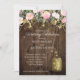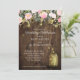 Invitaciones a bodas rústicas con flores color agua rosa y dorado sobre luces brillantes doradas con luciérnagas brillantes sobre un fondo de madera de granero. También hay un frasco de albañil lleno de luciérnagas y luces espumosas. Los cuadros de texto son fáciles de personalizar con su propia información. Si quieres este diseño en un producto similar, o necesitas ayuda, por favor contacta conmigo a través de mi tienda.