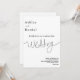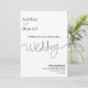 Esta elegante invitación a la boda en blanco y negro es perfecta para un boda moderno. el diseño es sencillo, con una elegante caligrafía negra sobre un fondo blanco.